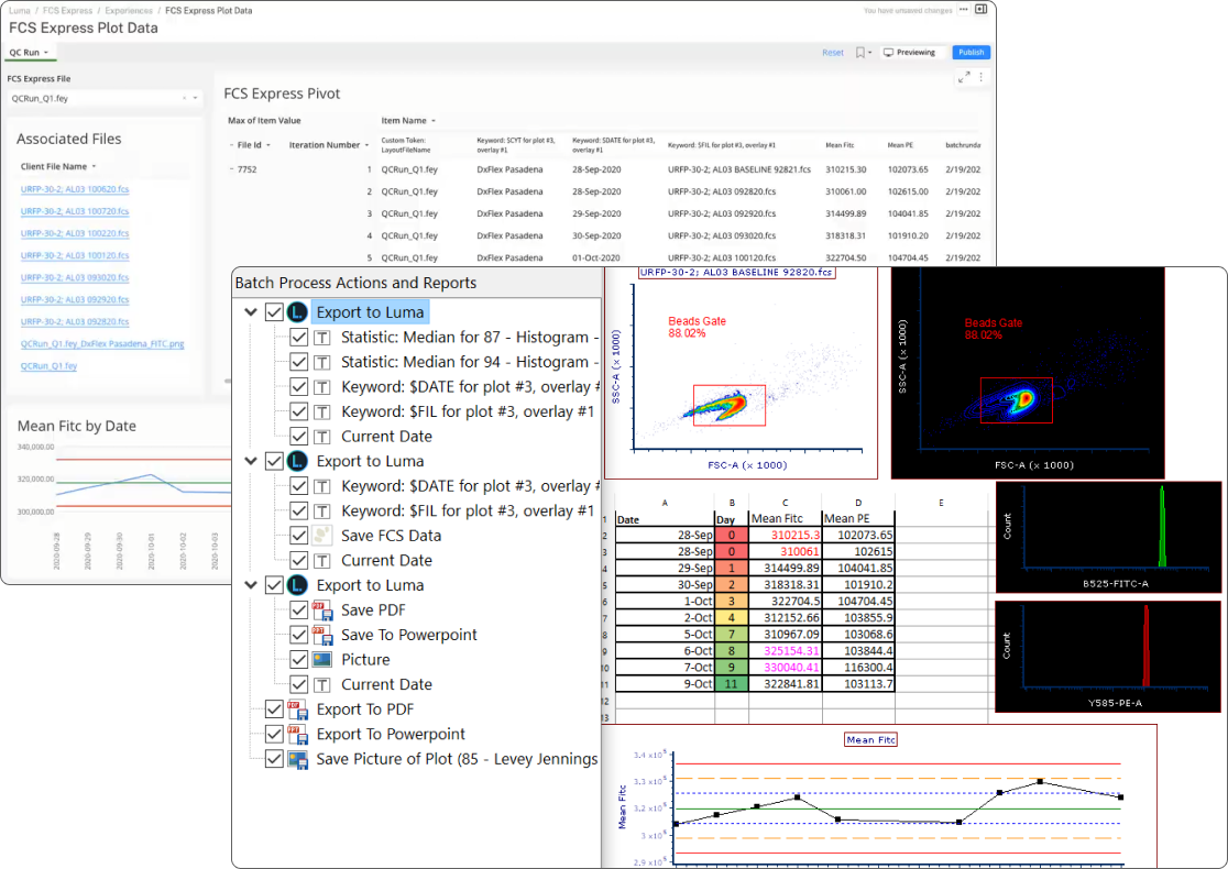 FCS Express Luma solves this by enabling one-click exports from FCS Express into Luma via Luma Lab Connect, where your data becomes structured and centralized. QC results, metadata, and visualizations are embedded and linked across experiments—so you can eliminate silos, ensure compliance, and enable better science.